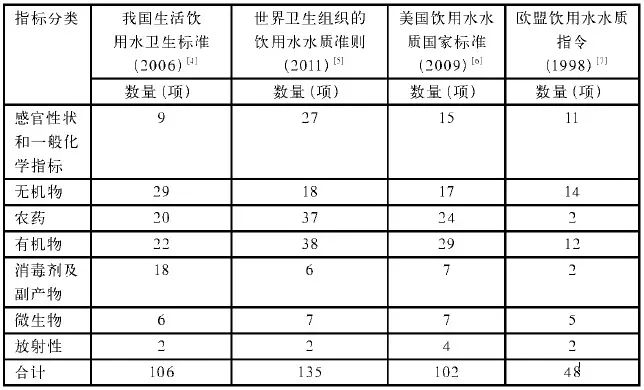 国内外饮用水水质标准的比较