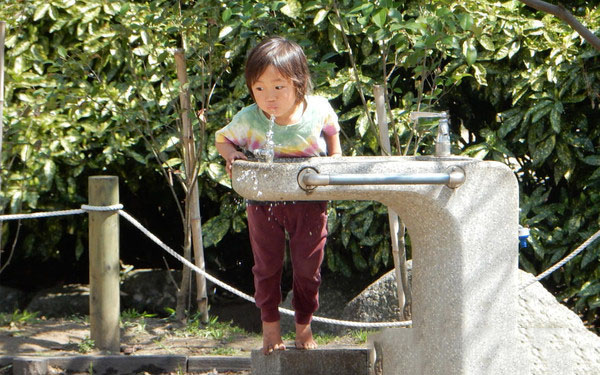 【随处可见直饮水】日本的车站、公园、学校等公共场所大都设有免费的直饮水设施,这类直饮水龙头多数是向上喷水的,口渴的行人不用杯子也可以打开龙头直接饮水。